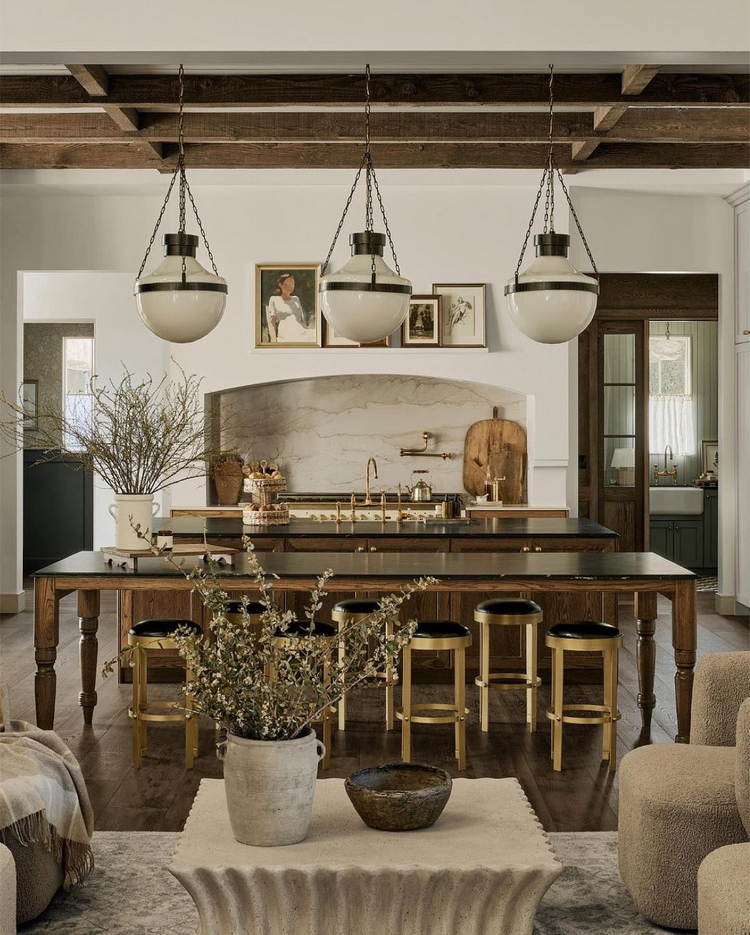Without access to specific content from the Instagram link provided, the response will focus on general principles of achieving an aesthetic fusion of kitchen and dining areas.