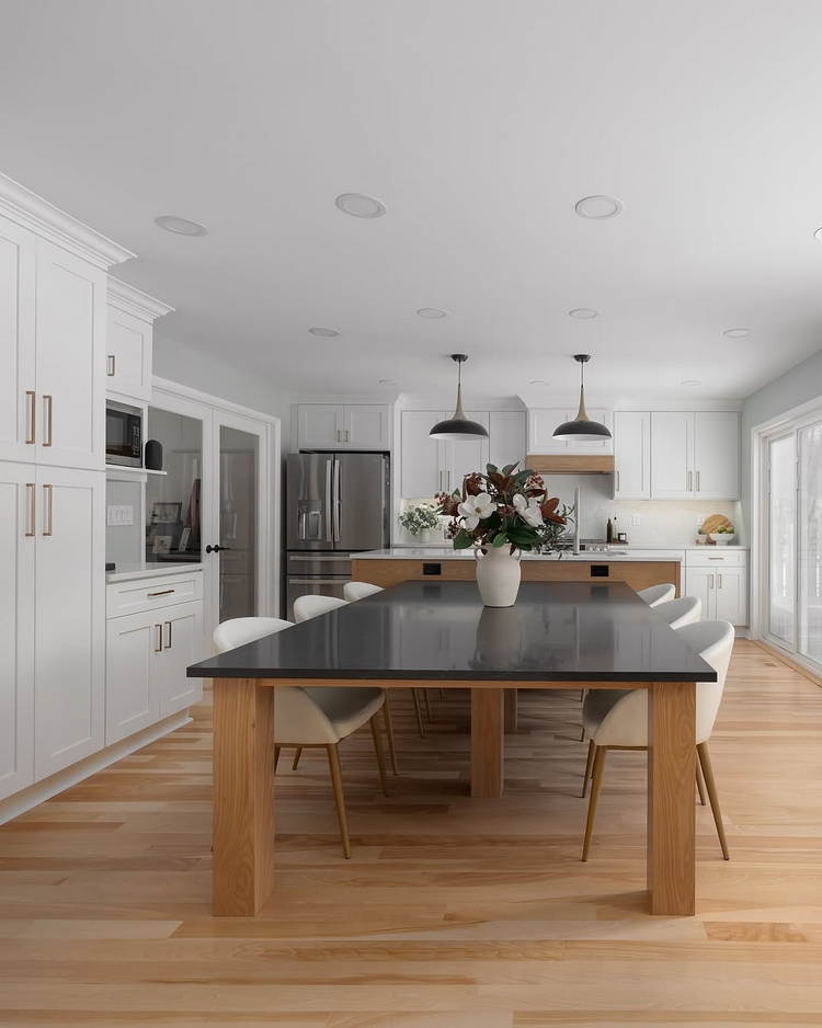 Seamless kitchen transitions are key to integrating these spaces effectively, enhancing both functionality and visual flow. Implementing a cohesive kitchen design can unify the overall aesthetic, achieved through consistent use of colors, materials, and styles across cabinets, countertops, and decor. For example, using a similar wood finish for both dining furniture and kitchen cabinetry can create visual symmetry.